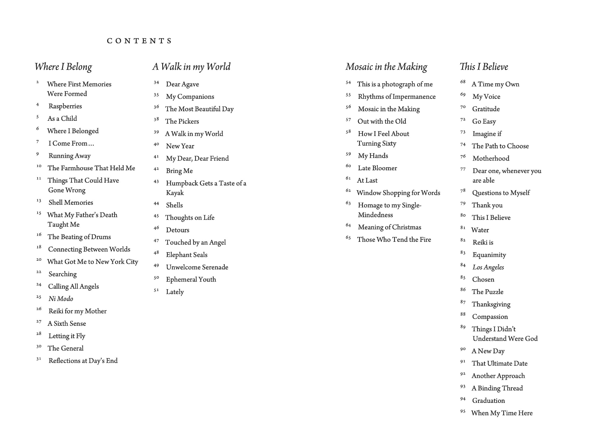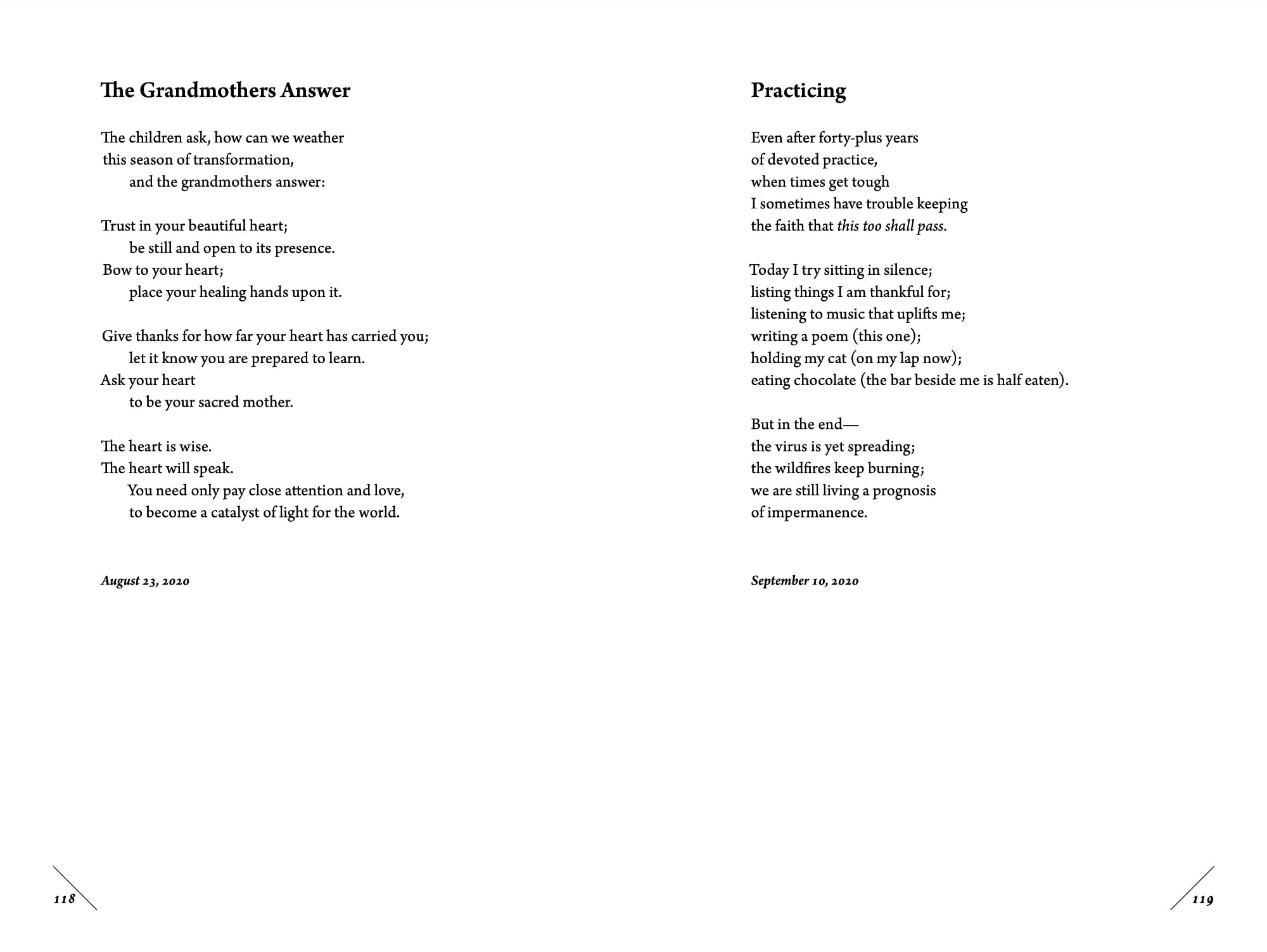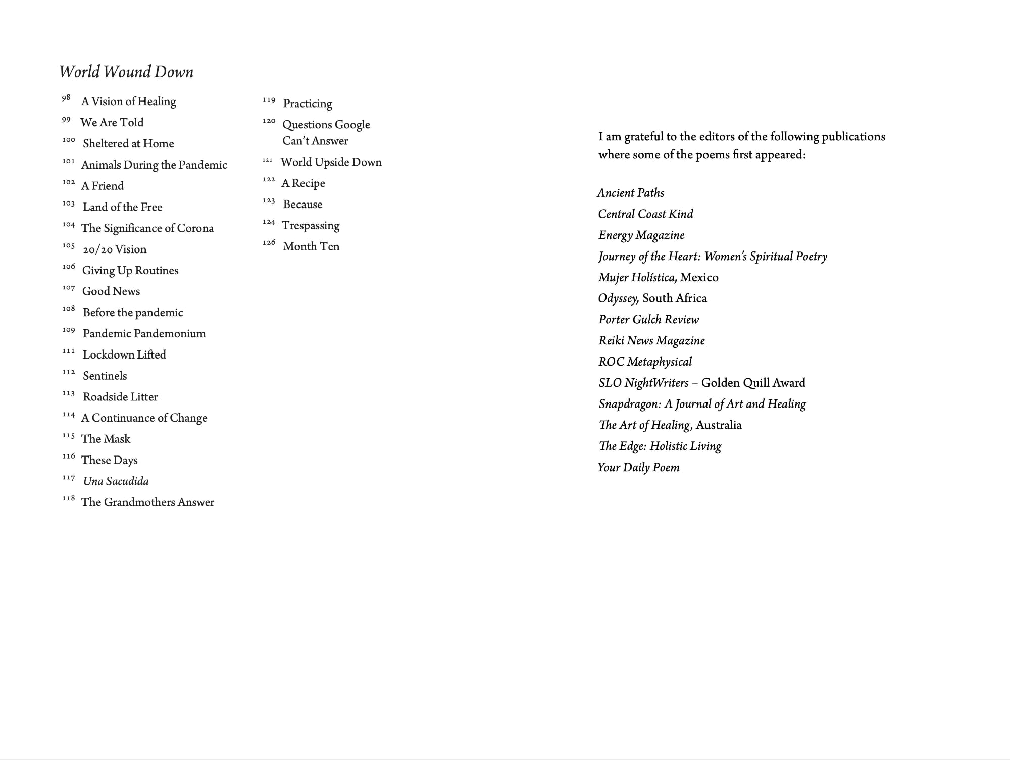 A poetry collection exploring themes of daily life — family, connection with nature, evolving beliefs, impermanence, energy healing, and reflections on the 2020 pandemic.