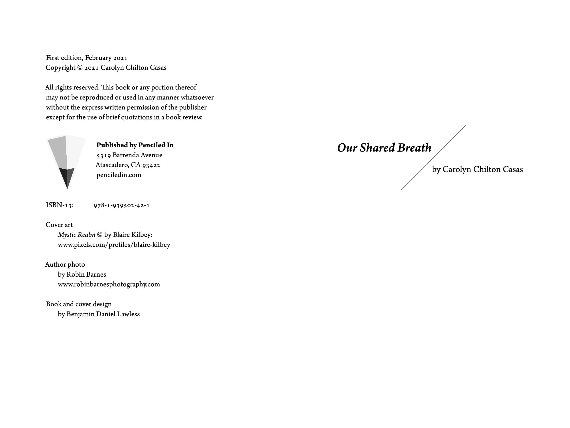 “Although these poems are very personal they are also universal, filled with insight and wisdom.” — From Quill & Parchment’s review of Our Shared Breath, April 2022.